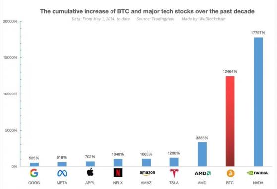 В последние десять лет биткоин продемонстрировал впечатляющий рост, увеличившись в цене на ошеломительные 12 464%. Эта цифра делает его одним из самых успешных инвестиционных активов за данное десятилетие, что особенно ярко выделяет его среди акций таких технологических гигантов, как Amazon, Alphabet Inc (материнская компания Google) и Netflix. Анализ, проведённый известным аналитиком Колином Ву, также известным под псевдонимом WuBlockchain, подтверждает изменение инвестиционного ландшафта, в котором биткоин играет ключевую роль.